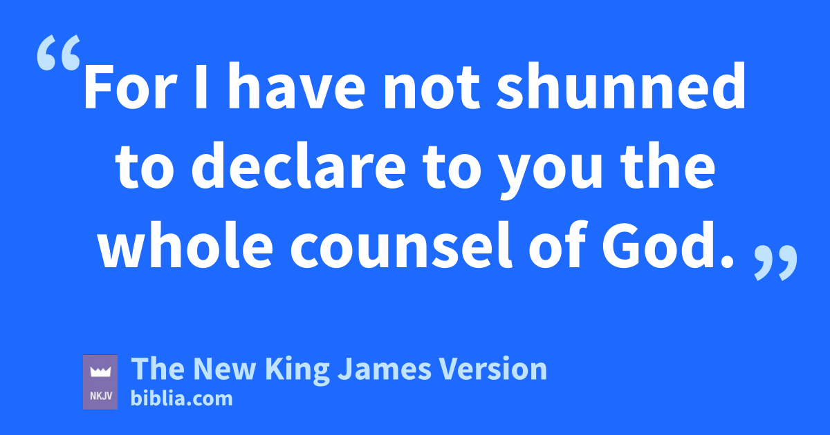 25 “And indeed, now I know that you all, among whom I have gone preaching the kingdom of God, will see my face no more. 26 Therefore I testify to you this day that I am einnocent 5of the blood of all men. 27 For I have not 6shunned to declare to you fthe whole counsel of God. 28 gTherefore take heed to yourselves and to all the flock, among which the Holy Spirit hhas made you overseers, to shepherd the church 7of God iwhich He purchased jwith His own blood. 29 For I know this, that after my departure ksavage wolves will come in among you, not sparing the flock. 30 Also lfrom among yourselves men will rise up, speaking 8perverse things, to draw away the disciples after themselves. 31 Therefore watch, and remember that mfor three years I did not cease to warn everyone night and day with tears.