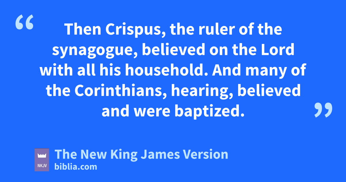 5 dWhen Silas and Timothy had come from Macedonia, Paul was ecompelled 1by the Spirit, and testified to the Jews that Jesus is the Christ. 6 But fwhen they opposed him and blasphemed, ghe shook his garments and said to them, h“Your blood be upon your own heads; iI am clean. jFrom now on I will go to the Gentiles.” 7 And he departed from there and entered the house of a certain man named 2Justus, one who worshiped God, whose house was next door to the synagogue. 8 kThen Crispus, the ruler of the synagogue, believed on the Lord with all his household. And many of the Corinthians, hearing, believed and were baptized.
