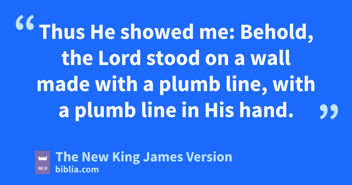 7 Thus He showed me: Behold, the Lord stood on a wall made with a plumb line, with a plumb line in His hand. 8 And the Lord said to me, “Amos, what do you see?”