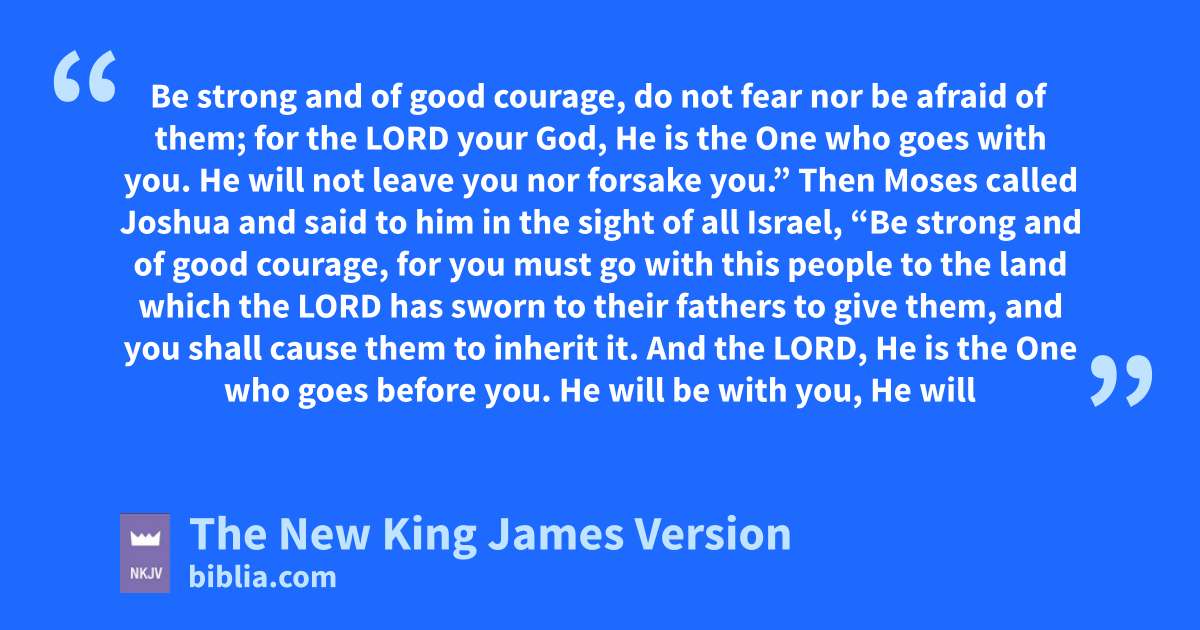 7 Then Moses called Joshua and said to him in the sight of all Israel, n“Be strong and of good courage, for you must go with this people to the land which the Lord has sworn to their fathers to give them, and you shall cause them to inherit it. 8 And the Lord, oHe is the One who goes before you. pHe will be with you, He will not leave you nor forsake you; do not fear nor be dismayed.”