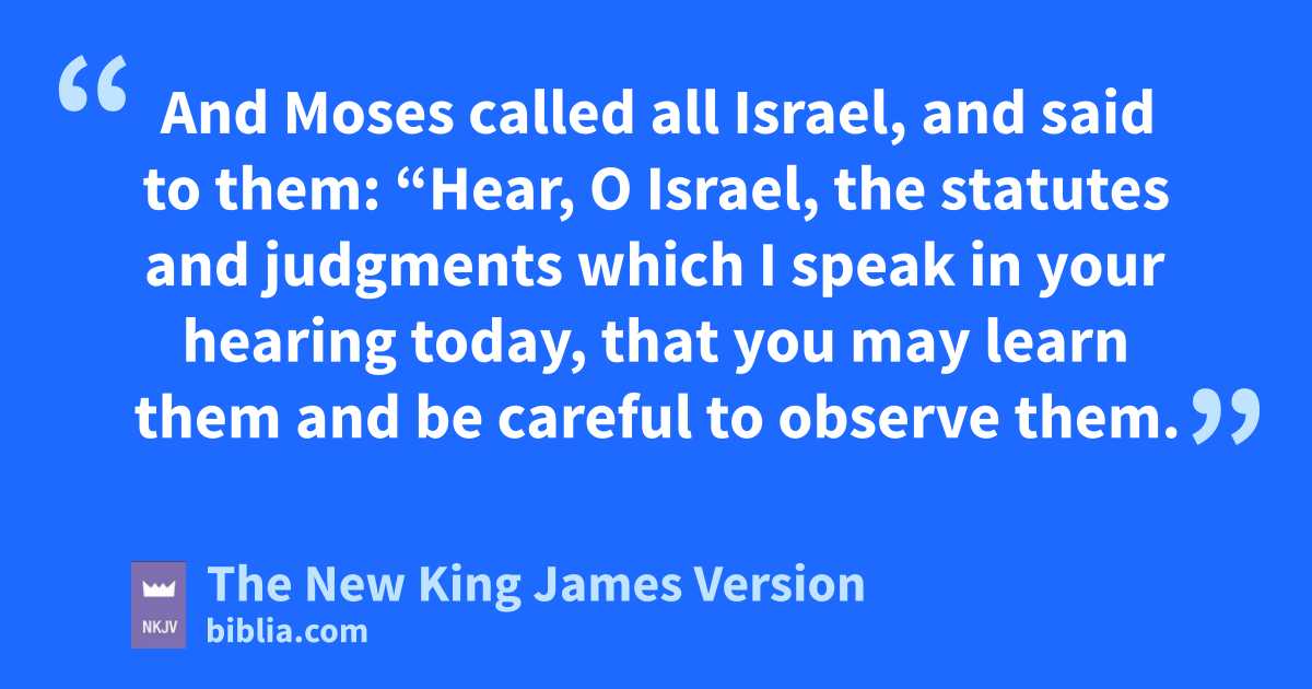 5 And Moses called all Israel, and said to them: “Hear, O Israel, the statutes and judgments which I speak in your hearing today, that you may learn them and be careful to observe them. 2 aThe Lord our God made a covenant with us in Horeb. 3 The Lord bdid not make this covenant with our fathers, but with us, those who are here today, all of us who are alive. 4 cThe Lord talked with you face to face on the mountain from the midst of the fire. 5 dI stood between the Lord and you at that time, to declare to you the word of the Lord; for eyou were afraid because of the fire, and you did not go up the mountain. He said:
