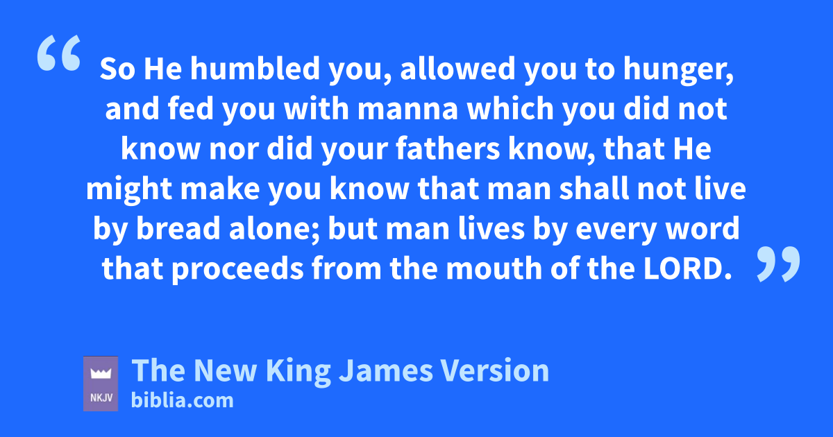 8 “Every commandment which I command you today ayou must 1be careful to observe, that you may live and bmultiply, 2and go in and possess the land of which the Lord 3swore to your fathers. 2 And you shall remember that the Lord your God cled you all the way these forty years in the wilderness, to humble you and dtest you, eto know what was in your heart, whether you would keep His commandments or not. 3 So He humbled you, fallowed you to hunger, and gfed you with manna which you did not know nor did your fathers know, that He might make you know that man shall hnot live by bread alone; but man lives by every word that proceeds from the mouth of the Lord. 4 iYour garments did not wear out on you, nor did your foot swell these forty years. 5 jYou should 4know in your heart that as a man chastens his son, so the Lord your God chastens you.