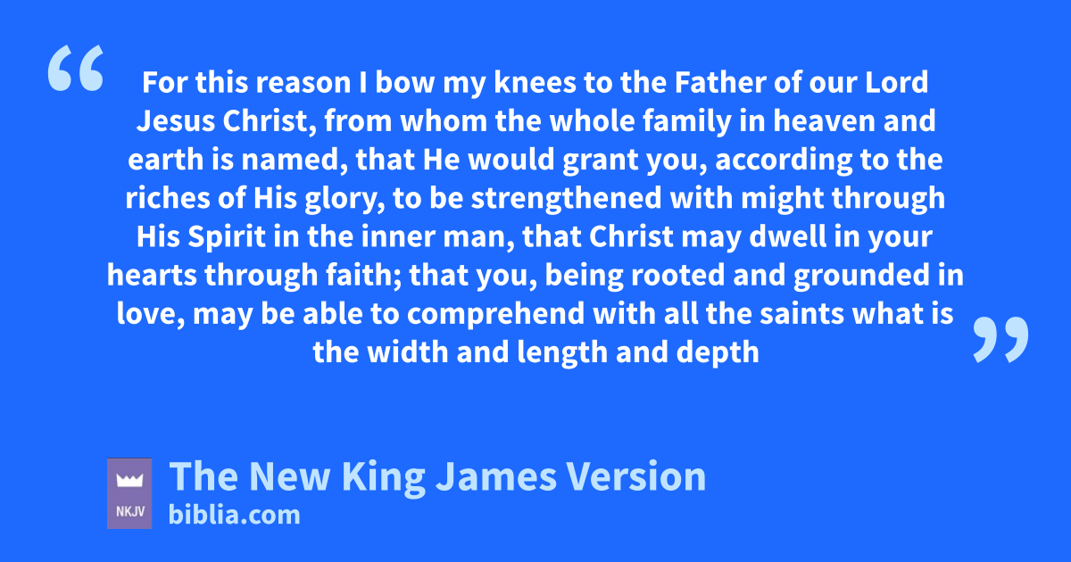 14 For this reason I bow my knees to the rFather 6of our Lord Jesus Christ, 15 from whom the whole family in heaven and earth is named, 16 that He would grant you, saccording to the riches of His glory, tto be strengthened with might through His Spirit in uthe inner man, 17 vthat Christ may dwell in your hearts through faith; that you, wbeing rooted and grounded in love, 18 xmay be able to comprehend with all the saints ywhat is the width and length and depth and height—19 to know the love of Christ which passes knowledge; that you may be filled zwith all the fullness of God.