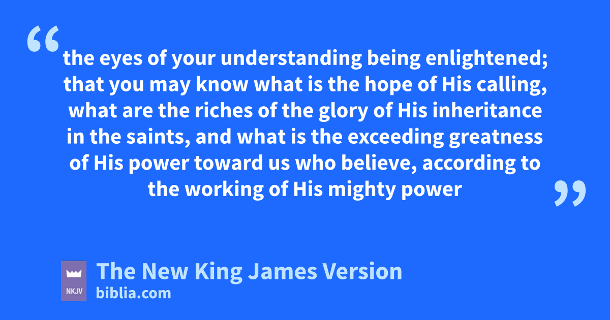 15 Therefore I also, aafter I heard of your faith in the Lord Jesus and your love for all the saints, 16 bdo not cease to give thanks for you, making mention of you in my prayers: 17 that cthe God of our Lord Jesus Christ, the Father of glory, dmay give to you the spirit of wisdom and revelation in the knowledge of Him, 18 ethe eyes of your 6understanding being enlightened; that you may know what is fthe hope of His calling, what are the riches of the glory of His inheritance in the saints, 19 and what is the exceeding greatness of His power toward us who believe, gaccording to the working of His mighty power 20 which He worked in Christ when hHe raised Him from the dead and iseated Him at His right hand in the heavenly places, 21 jfar above all kprincipality 7and 8power and 9might and dominion, and every name that is named, not only in this age but also in that which is to come.