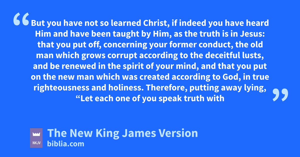 20 But you have not so learned Christ, 21 if indeed you have heard Him and have been taught by Him, as the truth is in Jesus: 22 that you zput off, concerning your former conduct, the old man which grows corrupt according to the deceitful lusts, 23 and abe renewed in the spirit of your mind, 24 and that you bput on the new man which was created according to God, in true righteousness and holiness.
