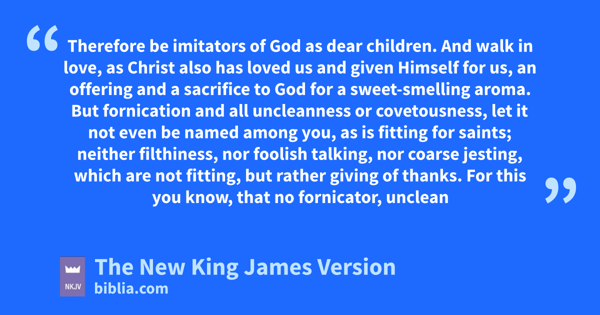 3 But fornication and all funcleanness or gcovetousness, let it not even be named among you, as is fitting for saints; 4 hneither filthiness, nor ifoolish talking, nor coarse jesting, jwhich are not fitting, but rather kgiving of thanks. 5 For 1this you know, that no fornicator, unclean person, nor covetous man, who is an idolater, has any linheritance in the kingdom of Christ and God. 6 Let no one deceive you with empty words, for because of these things the wrath of God comes upon the sons of disobedience. 7 Therefore do not be mpartakers with them.