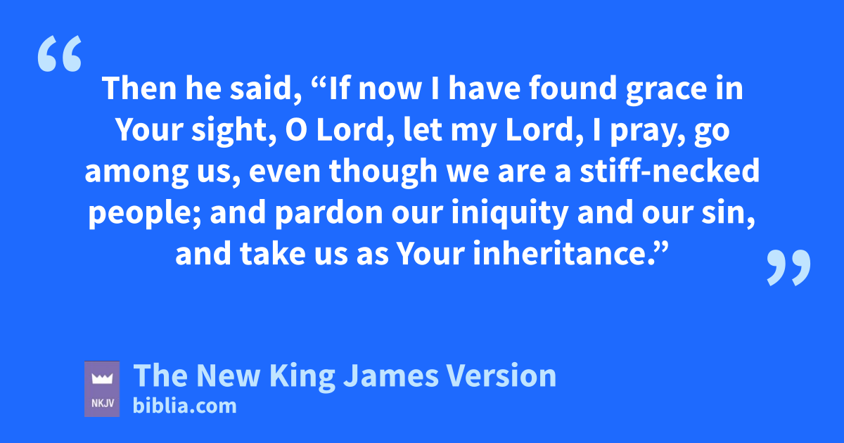 8 So Moses made haste and mbowed his head toward the earth, and worshiped. 9 Then he said, “If now I have found grace in Your sight, O Lord, nlet my Lord, I pray, go among us, even though we are a ostiff-necked 1people; and pardon our iniquity and our sin, and take us as pYour inheritance.”