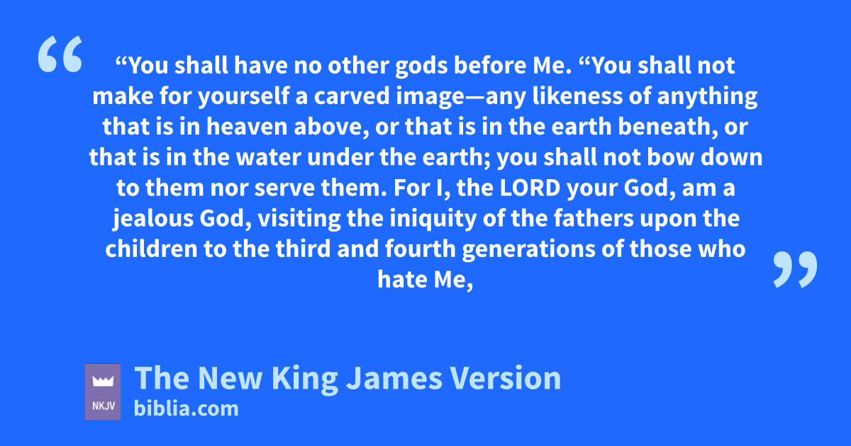4 e“You shall not make for yourself a carved image—any likeness of anything that is in heaven above, or that is in the earth beneath, or that is in the water under the earth; 5 fyou shall not bow down to them nor 2serve them. gFor I, the Lord your God, am a jealous God, hvisiting 3the iniquity of the fathers upon the children to the third and fourth generations of those who hate Me, 6 but ishowing mercy to thousands, to those who love Me and keep My commandments.