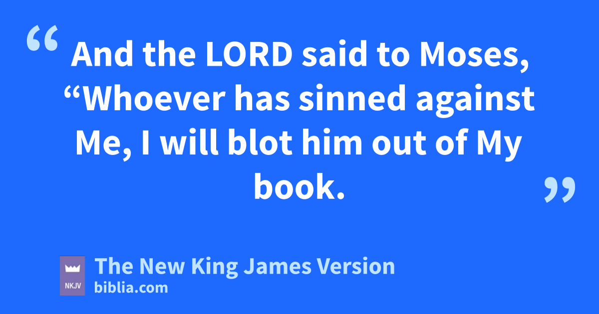 30 Now it came to pass on the next day that Moses said to the people, i“You have committed a great sin. So now I will go up to the Lord; jperhaps I can kmake atonement for your sin.” 31 Then Moses lreturned to the Lord and said, “Oh, these people have committed a great sin, and have mmade for themselves a god of gold! 32 Yet now, if You will forgive their sin—but if not, I pray, nblot me oout of Your book which You have written.”