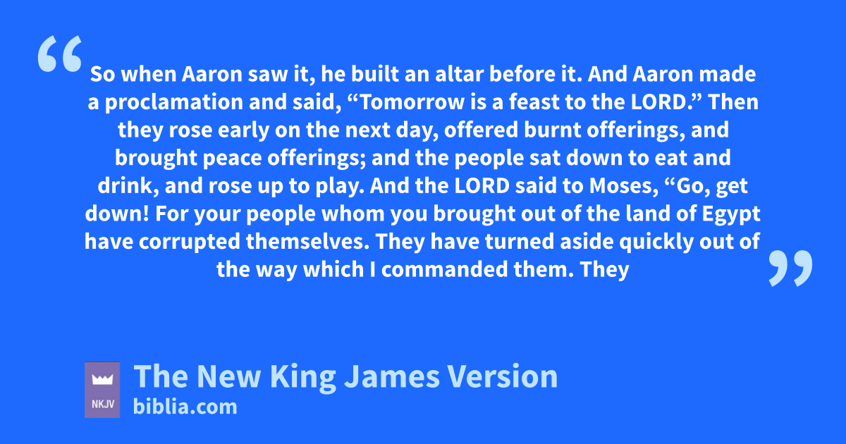 5 So when Aaron saw it, he built an altar before it. And Aaron made a iproclamation and said, “Tomorrow is a feast to the Lord.” 6 Then they rose early on the next day, offered burnt offerings, and brought peace offerings; and the people jsat down to eat and drink, and rose up to play.
