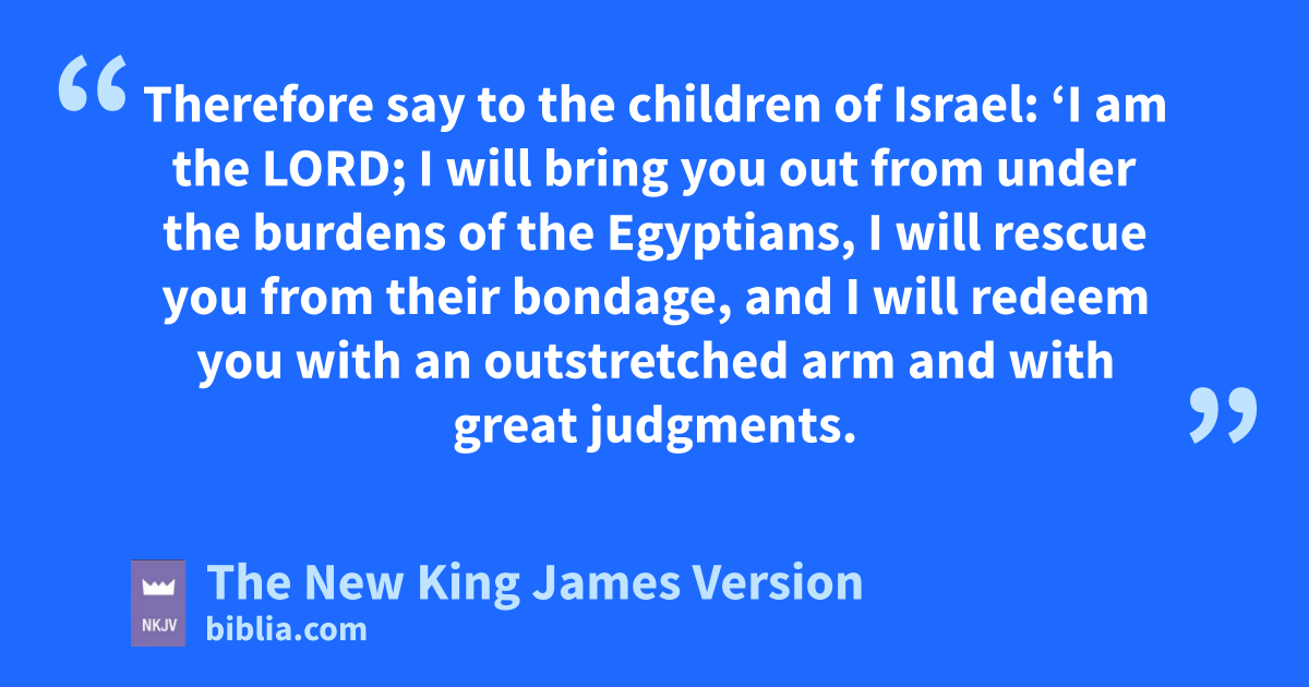 2 And God spoke to Moses and said to him: “I am 1the Lord. 3 cI appeared to Abraham, to Isaac, and to Jacob, as dGod Almighty, but by My name eLord 2I was not known to them. 4 fI have also 3established My covenant with them, gto give them the land of Canaan, the land of their 4pilgrimage, hin which they were 5strangers. 5 And iI have also heard the groaning of the children of Israel whom the Egyptians keep in bondage, and I have remembered My covenant. 6 Therefore say to the children of Israel: j‘I am the Lord; kI will bring you out from under the burdens of the Egyptians, I will lrescue you from their bondage, and I will redeem you with 6an outstretched arm and with great judgments. 7 I will mtake you as My people, and nI will be your God. Then you shall know that I am the Lord your God who brings you out ofrom under the burdens of the Egyptians. 8 And I will bring you into the land which I pswore 7to give to Abraham, Isaac, and Jacob; and I will give it to you as a heritage: I am the Lord.’ ” 9 So Moses spoke thus to the children of Israel; qbut they did not heed Moses, because of ranguish 8of spirit and cruel bondage.