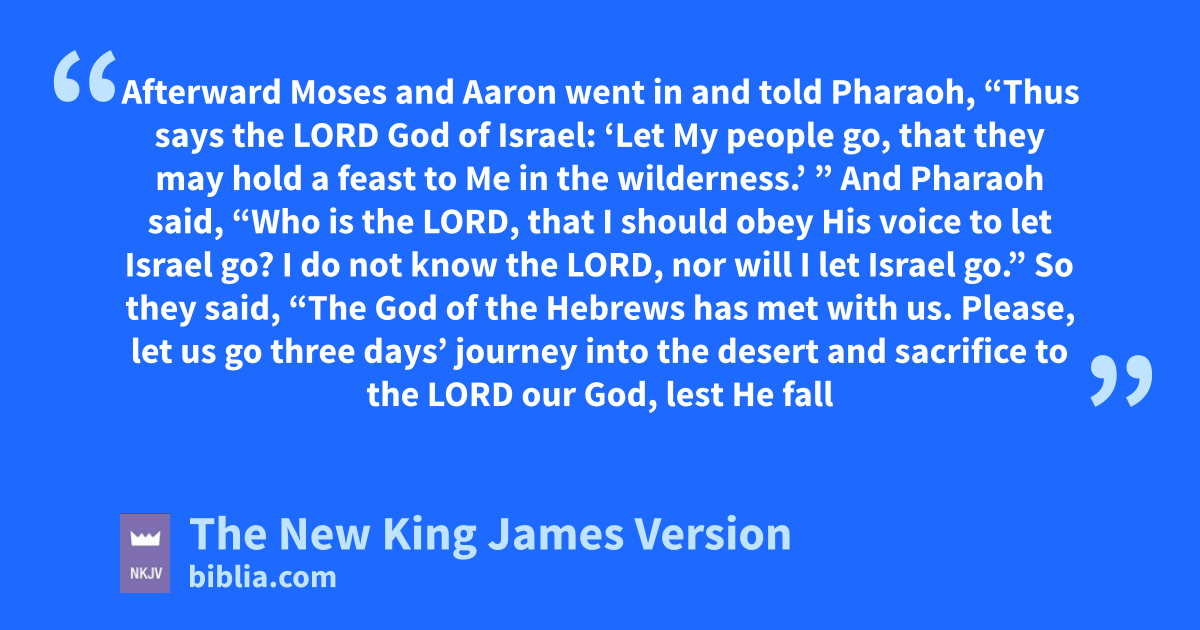 3 So they said, d“The God of the Hebrews has emet with us. Please, let us go three days’ journey into the desert and sacrifice to the Lord our God, lest He fall upon us with fpestilence or with the sword.”