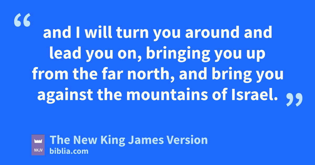 39 “And ayou, son of man, prophesy against Gog, and say, ‘Thus says the Lord God: “Behold, I am against you, O Gog, 1the prince of Rosh, Meshech, and Tubal; 2 and I will bturn you around and lead you on, cbringing you up from the far north, and bring you against the mountains of Israel. 3 Then I will knock the bow out of your left hand, and cause the arrows to fall out of your right hand. 4 dYou shall 2fall upon the mountains of Israel, you and all your troops and the peoples who are with you; eI will give you to birds of prey of every sort and to the beasts of the field to be devoured. 5 You shall 3fall on 4the open field; for I have spoken,” says the Lord God. 6 f“And I will send fire on Magog and on those who live 5in security in gthe coastlands. Then they shall know that I am the Lord. 7 hSo I will make My holy name known in the midst of My people Israel, and I will not let them iprofane My holy name anymore. jThen the nations shall know that I am the Lord, the Holy One in Israel. 8 kSurely it is coming, and it shall be done,” says the Lord God. “This is the day lof which I have spoken.