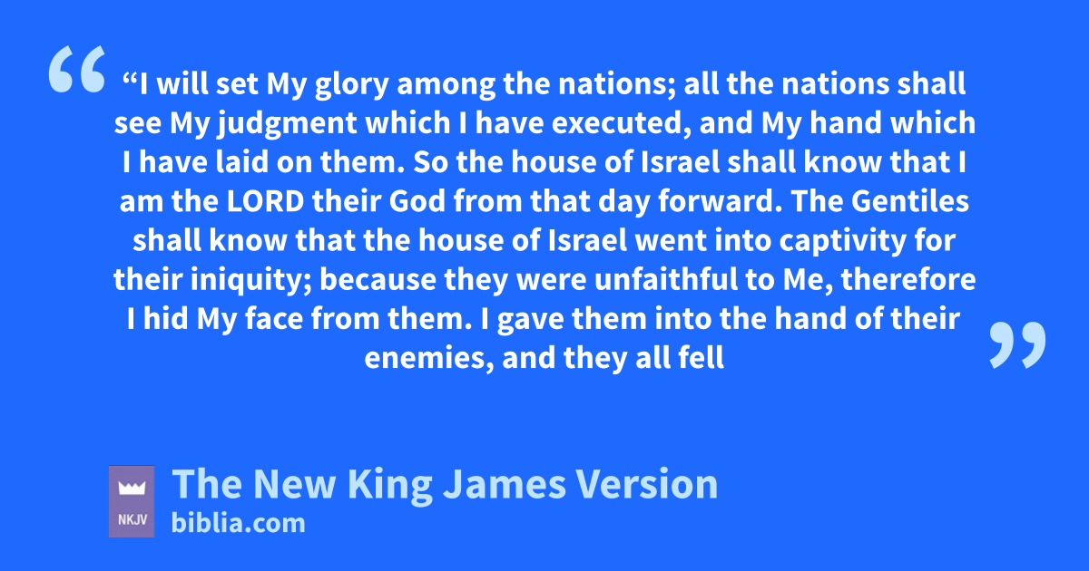 21 a“I will set My glory among the nations; all the nations shall see My judgment which I have executed, and bMy hand which I have laid on them. 22 cSo the house of Israel shall know that I am the Lord their God from that day forward. 23 dThe Gentiles shall know that the house of Israel went into captivity for their iniquity; because they were unfaithful to Me, therefore eI hid My face from them. I fgave them into the hand of their enemies, and they all fell by the sword. 24 gAccording to their uncleanness and according to their transgressions I have dealt with them, and hidden My face from them.” ’