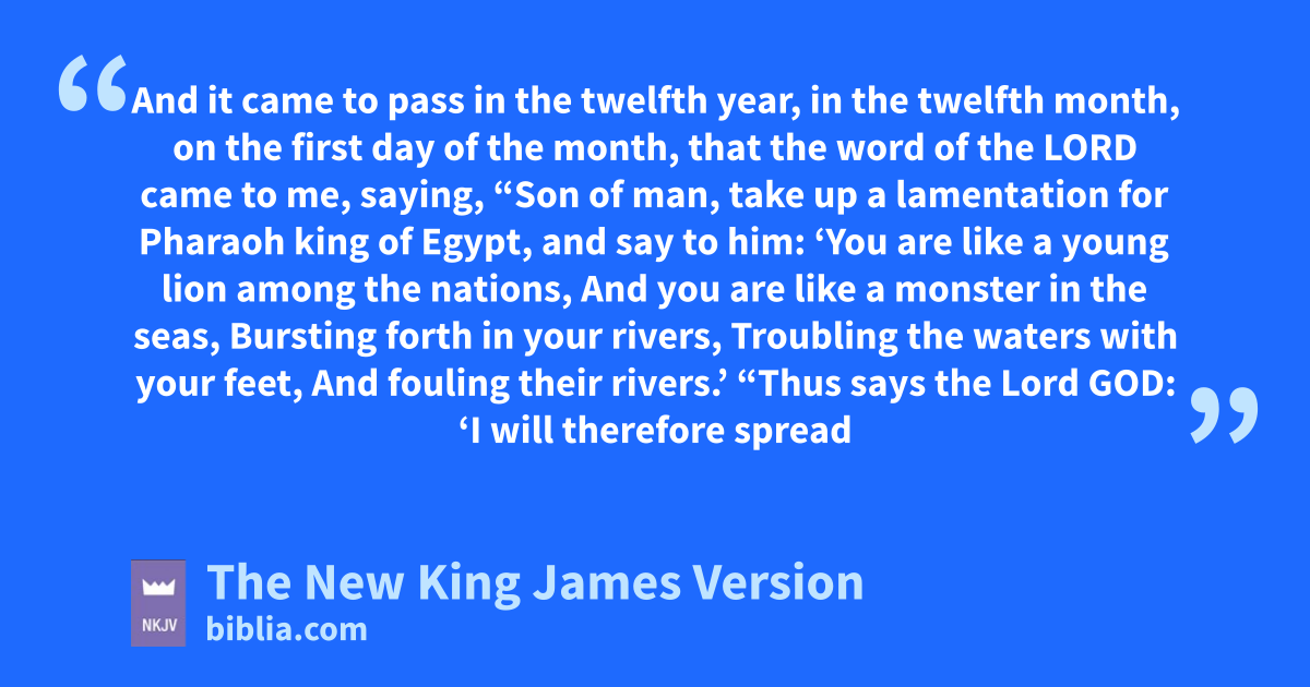 32 And it came to pass in the twelfth year, in the atwelfth month, on the first day of the month, that the word of the Lord came to me, saying, 2 “Son of man, btake up a lamentation for Pharaoh king of Egypt, and say to him: