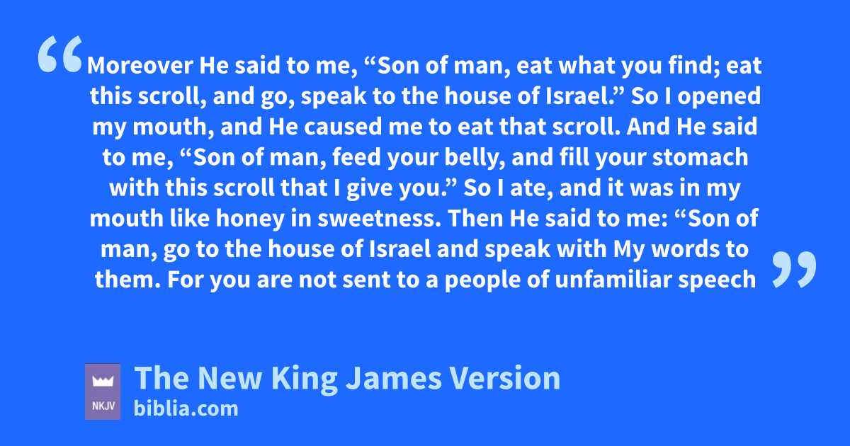 3 Moreover He said to me, “Son of man, eat what you find; aeat this scroll, and go, speak to the house of Israel.” 2 So I opened my mouth, and He caused me to eat that scroll.