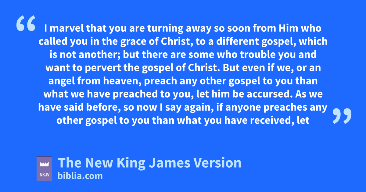 6 I marvel that you are turning away so soon efrom Him who called you in the grace of Christ, to a different gospel, 7 fwhich is not another; but there are some gwho trouble you and want to hpervert 1the gospel of Christ. 8 But even if iwe, or an angel from heaven, preach any other gospel to you than what we have preached to you, let him be 2accursed. 9 As we have said before, so now I say again, if anyone preaches any other gospel to you jthan what you have received, let him be accursed.