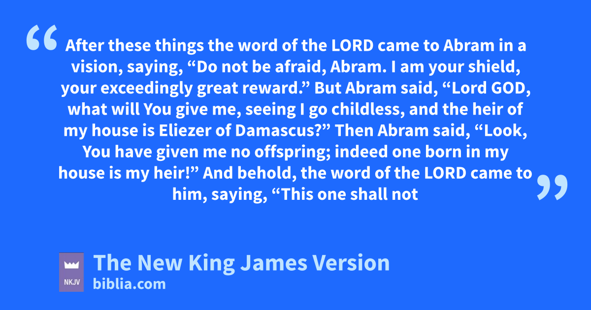 15 After these things the word of the Lord came to Abram ain a vision, saying, b“Do not be afraid, Abram. I am your cshield, 1your exceedingly dgreat reward.”