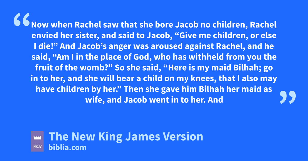 30 Now when Rachel saw that ashe bore Jacob no children, Rachel benvied her sister, and said to Jacob, “Give me children, cor else I die!”