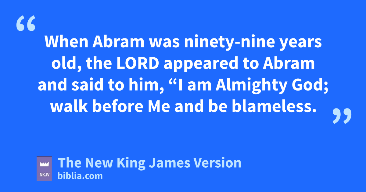 17 When Abram was ninety-nine years old, the Lord aappeared to Abram and said to him, b“I am 1Almighty God; cwalk before Me and be dblameless. 2 And I will make My ecovenant between Me and you, and fwill multiply you exceedingly.” 3 Then Abram fell on his face, and God talked with him, saying: 4 “As for Me, behold, My covenant is with you, and you shall be ga father of 2many nations. 5 No longer shall hyour name be called 3Abram, but your name shall be 4Abraham; ifor I have made you a father of 5many nations. 6 I will make you exceedingly fruitful; and I will make jnations of you, and kkings shall come from you. 7 And I will lestablish My covenant between Me and you and your descendants after you in their generations, for an everlasting covenant, mto be God to you and nyour descendants after you. 8 Also oI give to you and your descendants after you the land pin 6which you are a stranger, all the land of Canaan, as an everlasting possession; and qI will be their God.”