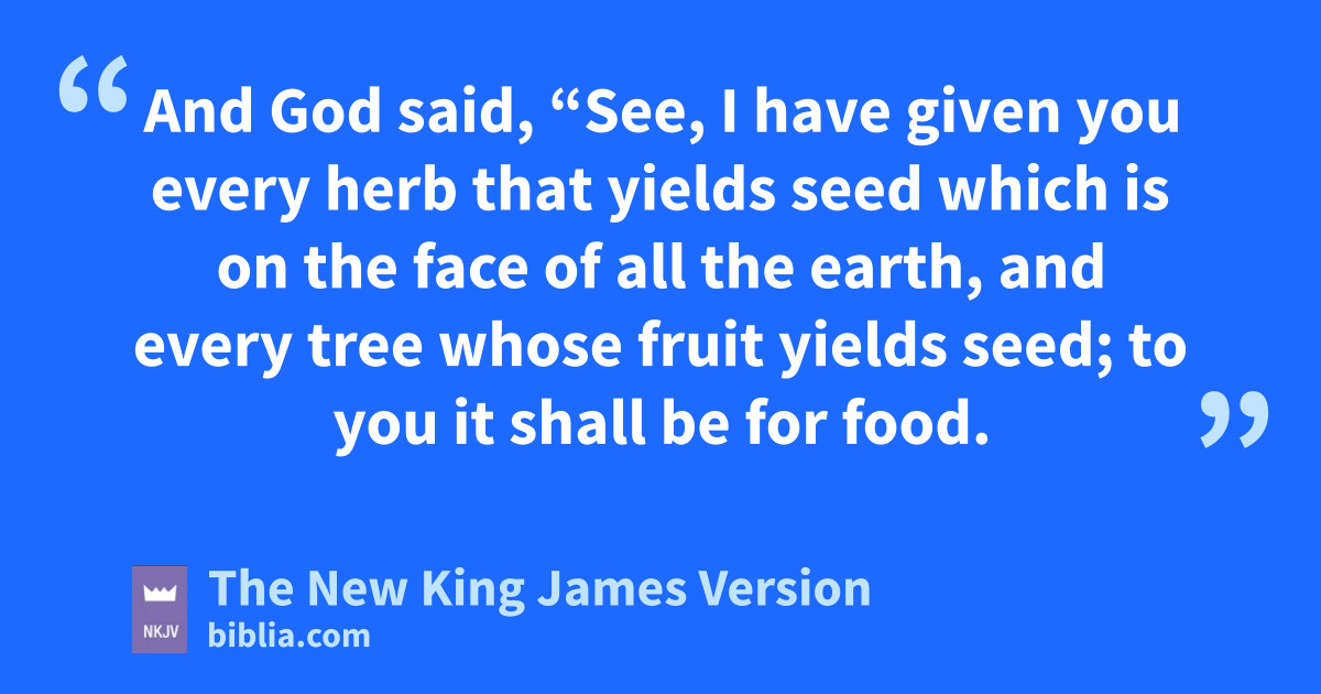 29 And God said, “See, I have given you every herb that yields seed which is on the face of all the earth, and every tree whose fruit yields seed; eto you it shall be for food. 30 Also, to fevery beast of the earth, to every gbird of the air, and to everything that creeps on the earth, in which there is 9life, I have given every green herb for food”; and it was so. 31 Then hGod saw everything that He had made, and indeed it was very good. So the evening and the morning were the sixth day.