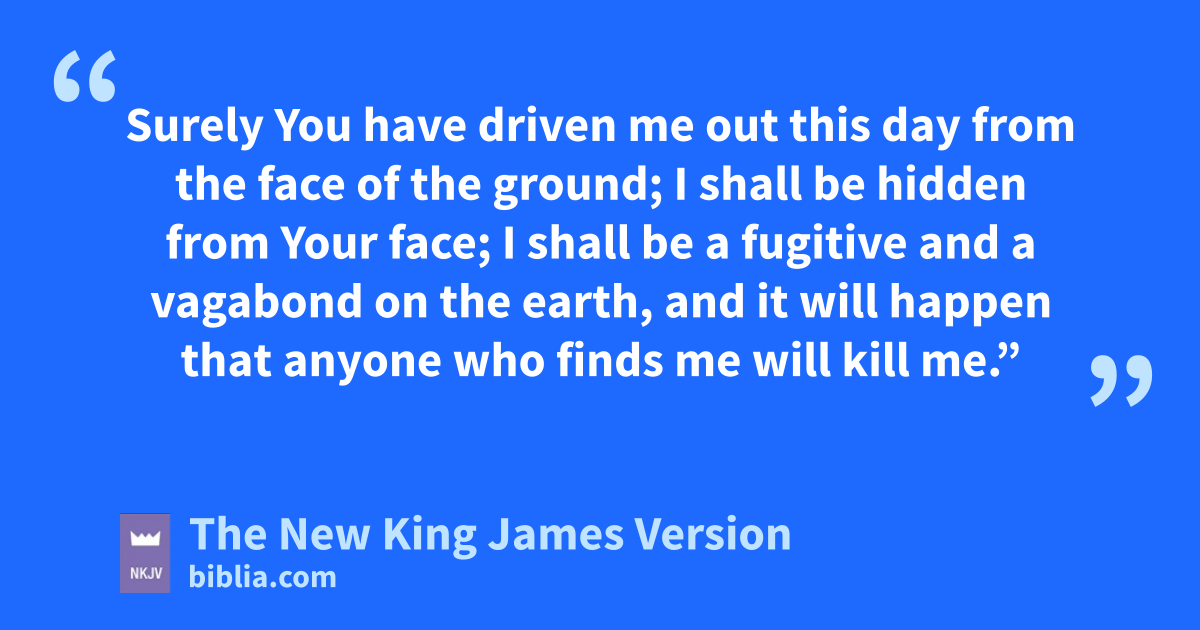 13 And Cain said to the Lord, “My 7punishment is greater than I can bear! 14 Surely You have driven me out this day from the face of the ground; kI shall be lhidden from Your face; I shall be a fugitive and a vagabond on the earth, and it will happen that manyone who finds me will kill me.”