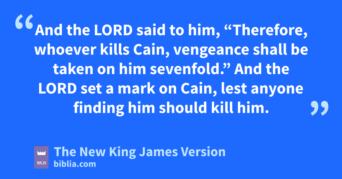 15 And the Lord said to him, 8“Therefore, whoever kills Cain, vengeance shall be taken on him nsevenfold.” And the Lord set a omark on Cain, lest anyone finding him should kill him.