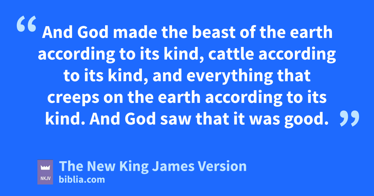 24 Then God said, “Let the earth bring forth the living creature according to its kind: cattle and creeping thing and beast of the earth, each according to its kind”; and it was so. 25 And God made the beast of the earth according to its kind, cattle according to its kind, and everything that creeps on the earth according to its kind. And God saw that it was good.
