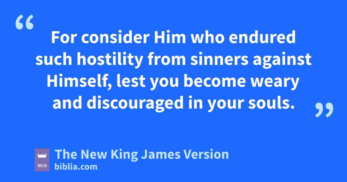 3 gFor consider Him who endured such hostility from sinners against Himself, hlest you become weary and discouraged in your souls. 4 iYou have not yet resisted to bloodshed, striving against sin. 5 And you have forgotten the exhortation which speaks to you as to sons: