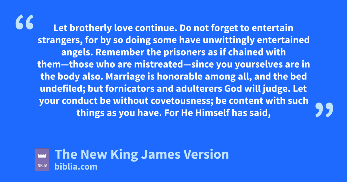 13 Let abrotherly love continue. 2 bDo not forget to entertain strangers, for by so doing csome have unwittingly entertained angels. 3 dRemember the prisoners as if chained with them—those who are mistreated—since you yourselves are in the body also.
