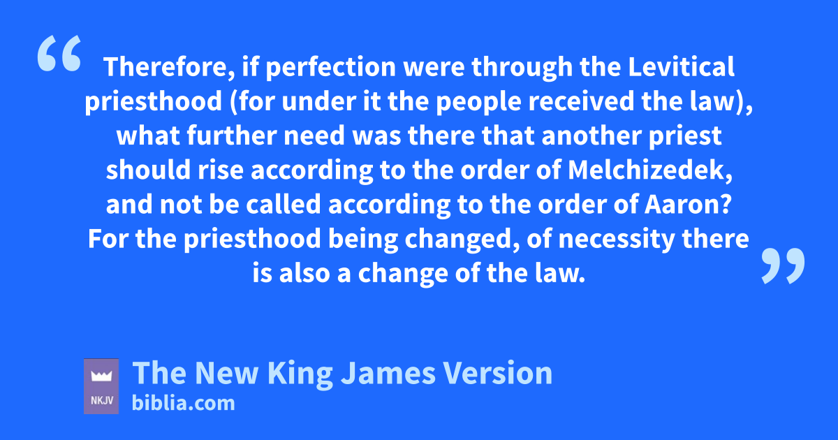 11 fTherefore, if perfection were through the Levitical priesthood (for under it the people received the law), what further need was there that another priest should rise according to the order of Melchizedek, and not be called according to the order of Aaron? 12 For the priesthood being changed, of necessity there is also a change of the law. 13 For He of whom these things are spoken belongs to another tribe, from which no man has 2officiated at the altar.