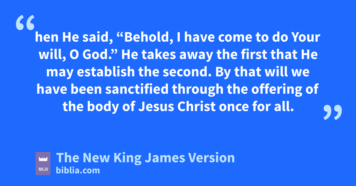 8 Previously saying, “Sacrifice and offering, burnt offerings, and offerings for sin You did not desire, nor had pleasure in them” (which are offered according to the law), 9 then He said, “Behold, I have come to do Your will, 2O God.” He takes away the first that He may establish the second. 10 eBy that will we have been 3sanctified fthrough the offering of the body of Jesus Christ once for all.