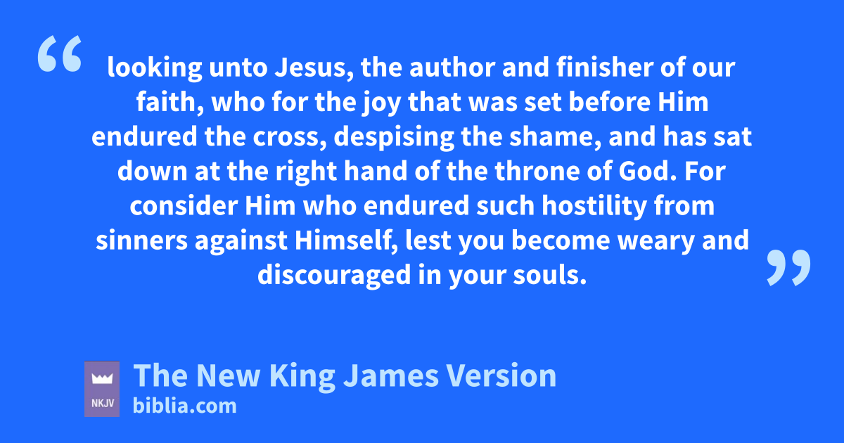12 Therefore we also, since we are surrounded by so great a cloud of witnesses, alet us lay aside every weight, and the sin which so easily ensnares us, and blet us run cwith endurance the race that is set before us, 2 looking unto Jesus, the 1author and 2finisher of our faith, dwho for the joy that was set before Him eendured the cross, despising the shame, and fhas sat down at the right hand of the throne of God.