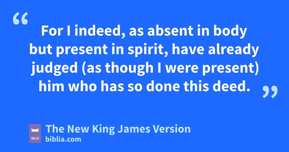 5 It is actually reported that there is sexual immorality among you, and such sexual immorality as is not even 1named among the Gentiles—that a man has his father’s awife! 2 bAnd you are 2puffed up, and have not rather cmourned, that he who has done this deed might be taken away from among you. 3 dFor I indeed, as absent in body but present in spirit, have already judged (as though I were present) him who has so done this deed. 4 In the ename of our Lord Jesus Christ, when you are gathered together, along with my spirit, fwith the power of our Lord Jesus Christ, 5 gdeliver such a one to hSatan for the destruction of the flesh, that his spirit may be saved in the day of the Lord 3Jesus.