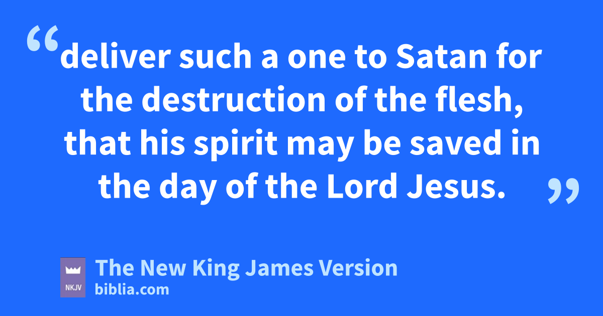 5 It is actually reported that there is sexual immorality among you, and such sexual immorality as is not even 1named among the Gentiles—that a man has his father’s awife! 2 bAnd you are 2puffed up, and have not rather cmourned, that he who has done this deed might be taken away from among you. 3 dFor I indeed, as absent in body but present in spirit, have already judged (as though I were present) him who has so done this deed. 4 In the ename of our Lord Jesus Christ, when you are gathered together, along with my spirit, fwith the power of our Lord Jesus Christ, 5 gdeliver such a one to hSatan for the destruction of the flesh, that his spirit may be saved in the day of the Lord 3Jesus.