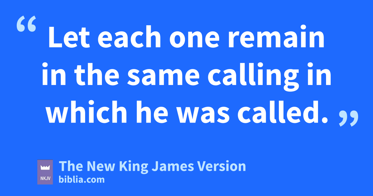 17 But as God has distributed to each one, as the Lord has called each one, so let him walk. And nso I 1ordain in all the churches. 18 Was anyone called while circumcised? Let him not become uncircumcised. Was anyone called while uncircumcised? oLet him not be circumcised. 19 pCircumcision is nothing and uncircumcision is nothing, but qkeeping the commandments of God is what matters. 20 Let each one remain in the same calling in which he was called. 21 Were you called while a slave? Do not be concerned about it; but if you can be made free, rather use it. 22 For he who is called in the Lord while a slave is rthe Lord’s freedman. Likewise he who is called while free is sChrist’s slave. 23 tYou were bought at a price; do not become slaves of men. 24 Brethren, let each one remain with uGod in that state in which he was called.