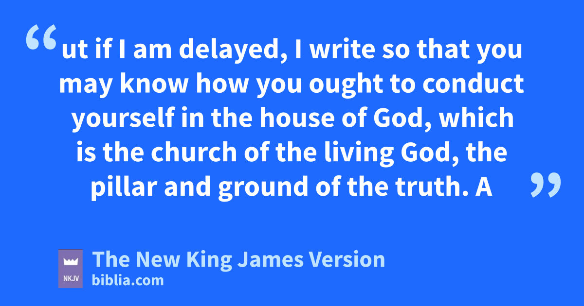 14 These things I write to you, though I hope to come to you shortly; 15 but if I am delayed, I write so that you may know how you ought to conduct yourself in the house of God, which is the church of the living God, the pillar and 8ground of the truth. 16 And without controversy great is the 9mystery of godliness: