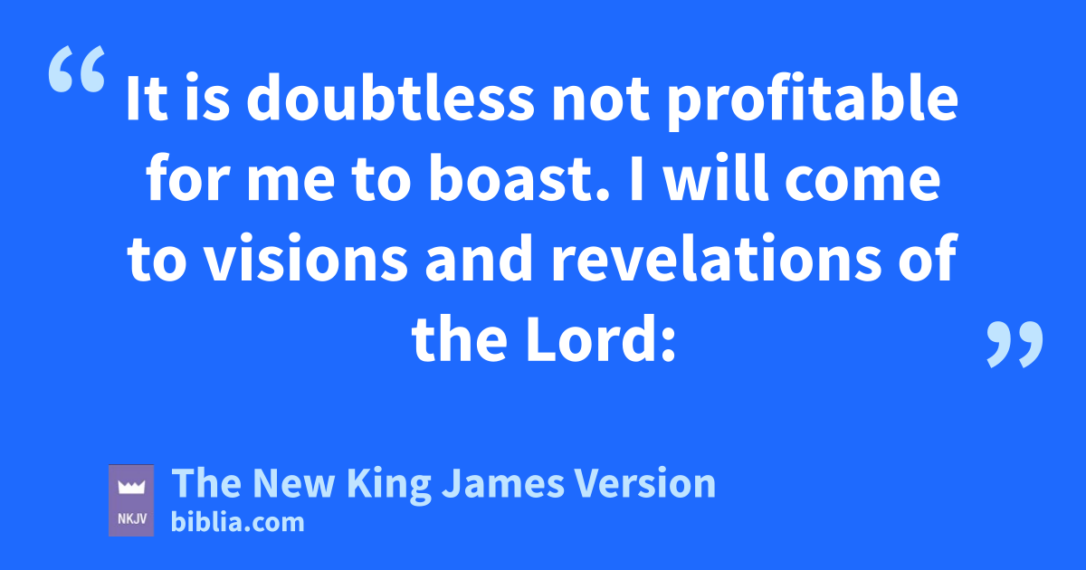 12 It is 1doubtless not profitable for me to boast. I will come to avisions and brevelations of the Lord: 2 I know a man cin Christ who fourteen years ago—whether in the body I do not know, or whether out of the body I do not know, God knows—such a one dwas caught up to the third heaven. 3 And I know such a man—whether in the body or out of the body I do not know, God knows—4 how he was caught up into eParadise and heard inexpressible words, which it is not lawful for a man to utter. 5 Of such a one I will boast; yet of myself I will not fboast, except in my infirmities. 6 For though I might desire to boast, I will not be a fool; for I will speak the truth. But I refrain, lest anyone should think of me above what he sees me to be or hears from me.