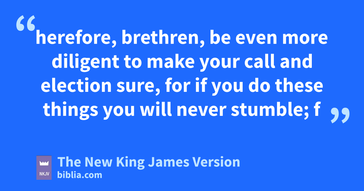 10 Therefore, brethren, be even more diligent mto make your call and election sure, for if you do these things you will never stumble; 11 for so an entrance will be supplied to you abundantly into the everlasting kingdom of our Lord and Savior Jesus Christ.