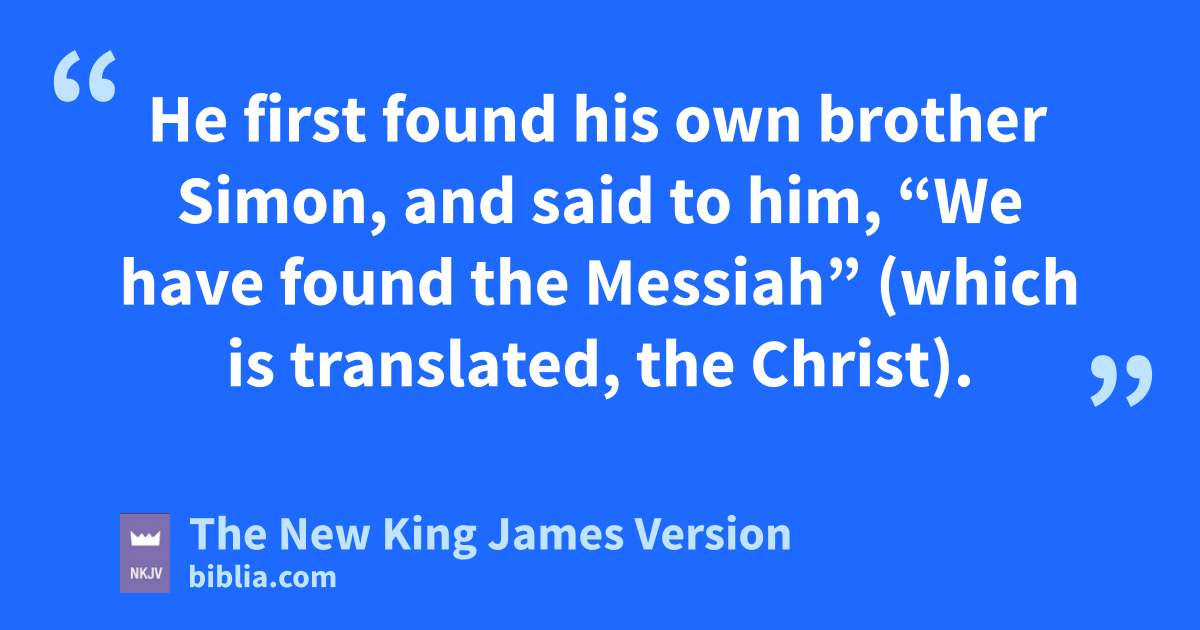 40 One of the two who heard John speak, and followed Him, was xAndrew, Simon Peter’s brother. 41 He first found his own brother Simon, and said to him, “We have found the 3Messiah” (which is translated, the Christ). 42 And he brought him to Jesus.