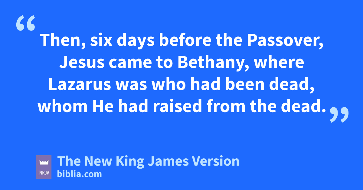 12 Then, six days before the Passover, Jesus came to Bethany, awhere Lazarus was 1who had been dead, whom He had raised from the dead. 2 bThere they made Him a supper; and Martha served, but Lazarus was one of those who sat at the table with Him. 3 Then cMary took a pound of very costly oil of dspikenard, anointed the feet of Jesus, and wiped His feet with her hair. And the house was filled with the fragrance of the oil.