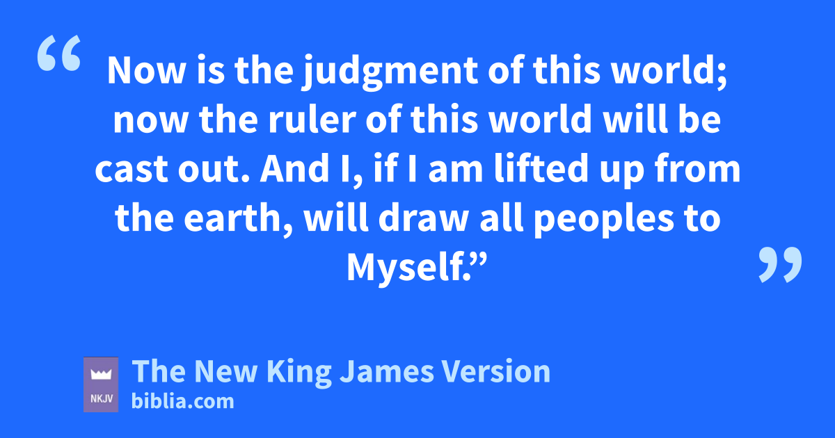 30 Jesus answered and said, e“This voice did not come because of Me, but for your sake. 31 Now is the judgment of this world; now fthe ruler of this world will be cast out. 32 And I, gif I am 5lifted up from the earth, will draw hall peoples to Myself.” 33 iThis He said, signifying by what death He would die.