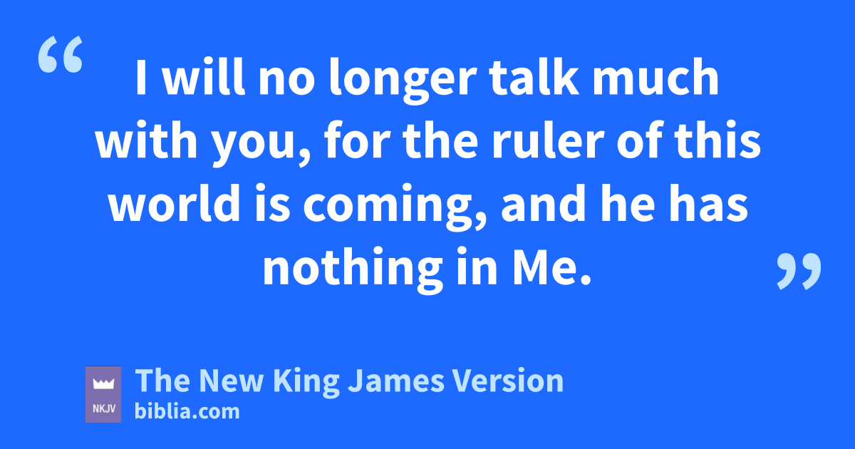 29 “And onow I have told you before it comes, that when it does come to pass, you may believe. 30 I will no longer talk much with you, pfor the ruler of this world is coming, and he has qnothing in Me. 31 But that the world may know that I love the Father, and ras the Father gave Me commandment, so I do. Arise, let us go from here.