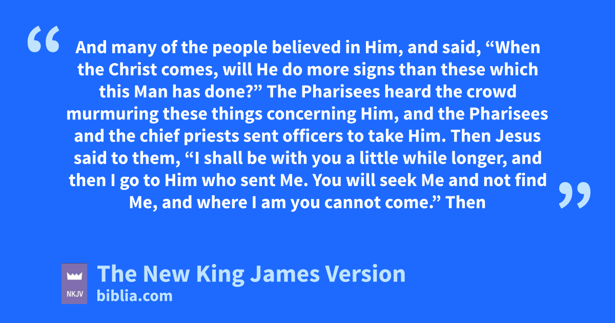 30 Therefore jthey sought to take Him; but kno one laid a hand on Him, because His hour had not yet come. 31 And lmany of the people believed in Him, and said, “When the Christ comes, will He do more signs than these which this Man has done?”