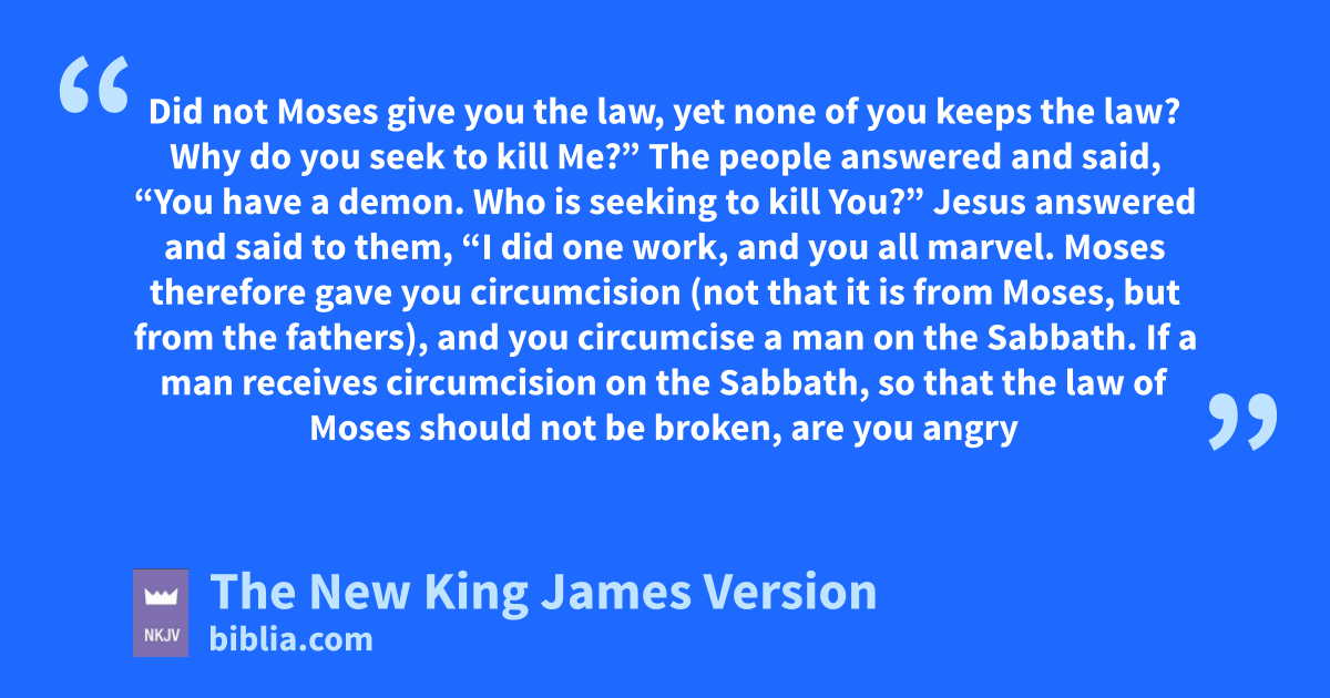 21 Jesus answered and said to them, “I did one work, and you all marvel. 22 xMoses therefore gave you circumcision (not that it is from Moses, ybut from the fathers), and you circumcise a man on the Sabbath. 23 If a man receives circumcision on the Sabbath, so that the law of Moses should not be broken, are you angry with Me because zI made a man completely well on the Sabbath? 24 aDo not judge according to appearance, but judge with righteous judgment.”