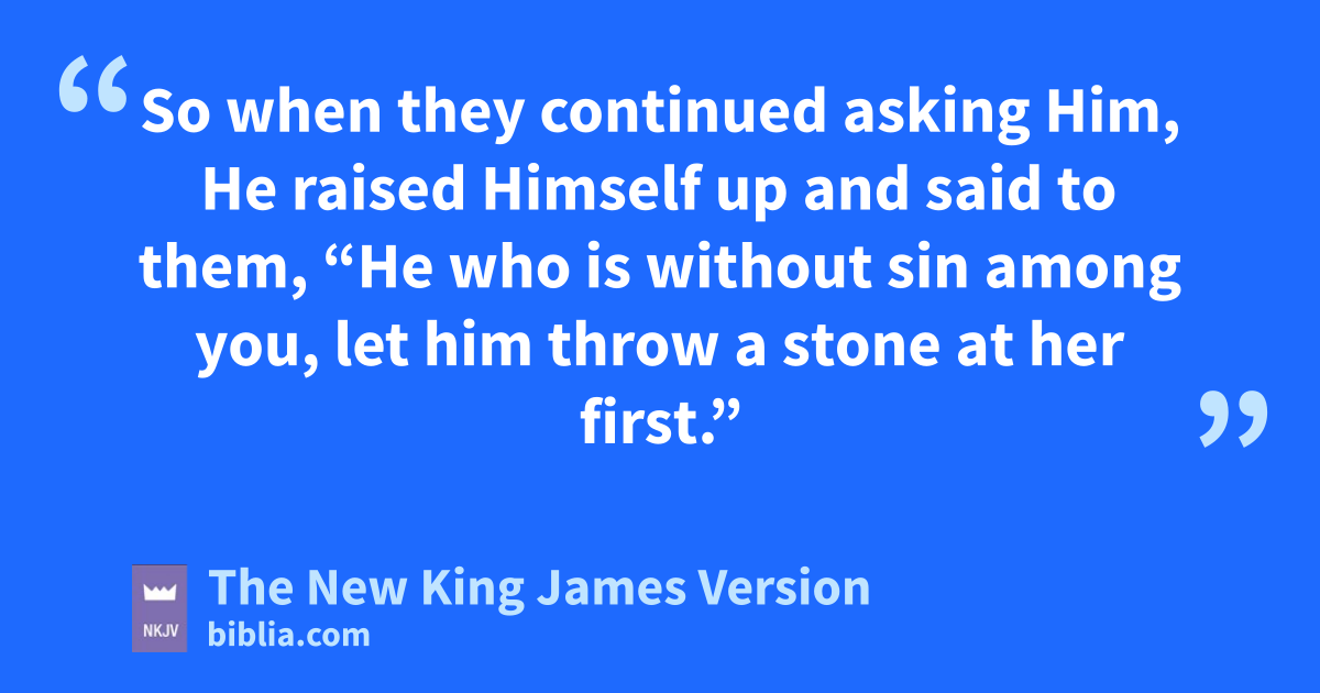 7 So when they continued asking Him, He 7raised Himself up and said to them, e“He who is without sin among you, let him throw a stone at her first.” 8 And again He stooped down and wrote on the ground. 9 Then those who heard it, fbeing 8convicted by their conscience, went out one by one, beginning with the oldest even to the last. And Jesus was left alone, and the woman standing in the midst. 10 When Jesus had raised Himself up 9and saw no one but the woman, He said to her, “Woman, where are those accusers 1of yours? Has no one condemned you?”