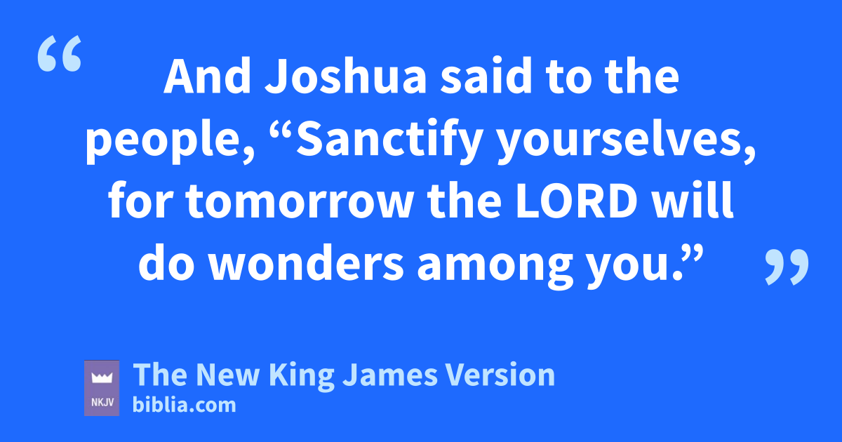 5 And Joshua said to the people, f“Sanctify 3yourselves, for tomorrow the Lord will do wonders among you.” 6 Then Joshua spoke to the priests, saying, g“Take up the ark of the covenant and cross over before the people.”