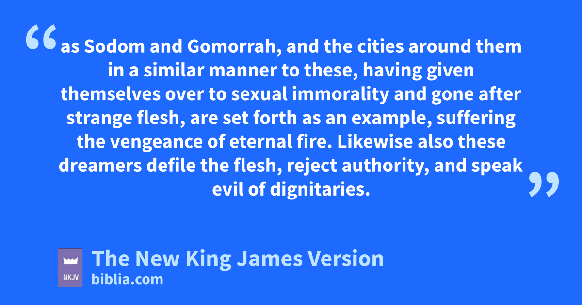 5 But I want to remind you, though you once knew this, that gthe Lord, having saved the people out of the land of Egypt, afterward destroyed those who did not believe. 6 And the angels who did not keep their 3proper domain, but left their own abode, He has reserved in everlasting chains under darkness for the judgment of the great day; 7 as hSodom and Gomorrah, and the cities around them in a similar manner to these, having given themselves over to sexual immorality and gone after strange flesh, are set forth as an example, suffering the 4vengeance of eternal fire.
