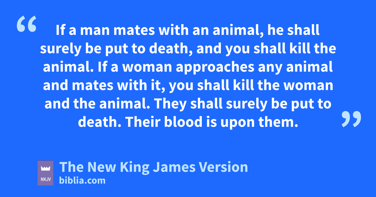10 k‘The man who commits adultery with another man’s wife, he who commits adultery with his neighbor’s wife, the adulterer and the adulteress, shall surely be put to death. 11 The man who lies with his lfather’s wife has uncovered his father’s nakedness; both of them shall surely be put to death. Their blood shall be upon them. 12 If a man lies with his mdaughter-in-law, both of them shall surely be put to death. They have committed perversion. Their blood shall be upon them. 13 nIf a man lies with a male as he lies with a woman, both of them have committed an abomination. They shall surely be put to death. Their blood shall be upon them. 14 If a man marries a woman and her omother, it is wickedness. They shall be burned with fire, both he and they, that there may be no wickedness among you. 15 If a man mates with an panimal, he shall surely be put to death, and you shall kill the animal. 16 If a woman approaches any animal and mates with it, you shall kill the woman and the animal. They shall surely be put to death. Their blood is upon them.