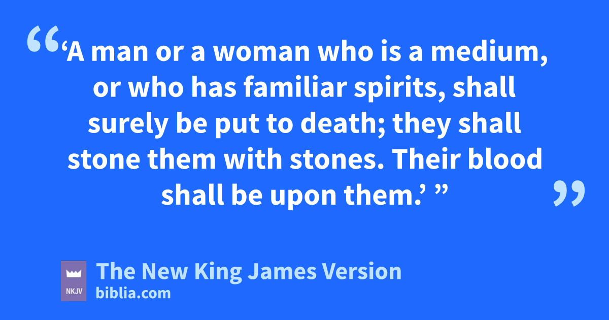27 f‘A man or a woman who is a medium, or who has familiar spirits, shall surely be put to death; they shall stone them with stones. Their blood shall be upon them.’ ”